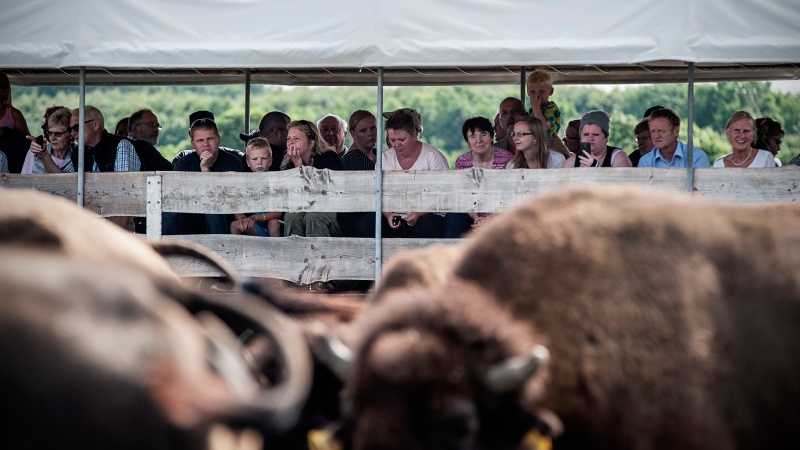 Efter opsamling kører vi til en spændende bison farm på Fyn. Bison Okser har en længde på 2,1 – 3,5 meter og vejer mellem 300 og 1000 kg og vi får mulighed for at opleve okserne på tæt hold. Vi får en guidet tur blandt de amerikanske bisonokser - som foregår i en åben, overdækket vogn, hvor vi får en masse viden undervejs. Herefter samles vi i restauranten hvor vi nyder en lækker middag, med kød fra farmens egne bison okser. I gårdbutikken er der mulighed for at læse om bisonoksens historie, se bisonknogler, mærke et bisonskind samt købe div. bison udskæringer og bisonspecialiteter med hjem. Kødet er utrolig mørt og fattigt på fedt og kolesterol, det gør det til noget af det sundeste kød man kan spise.