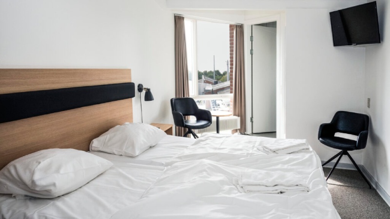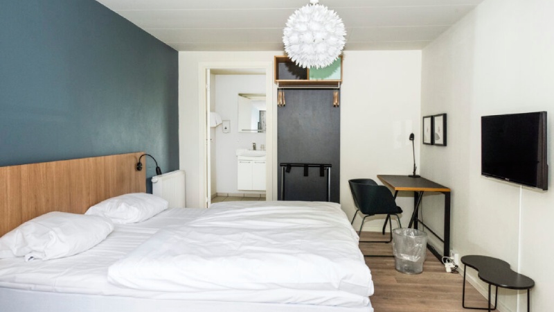 Værelser er placeret i separate bygninger rundt om hovedbygningen.
