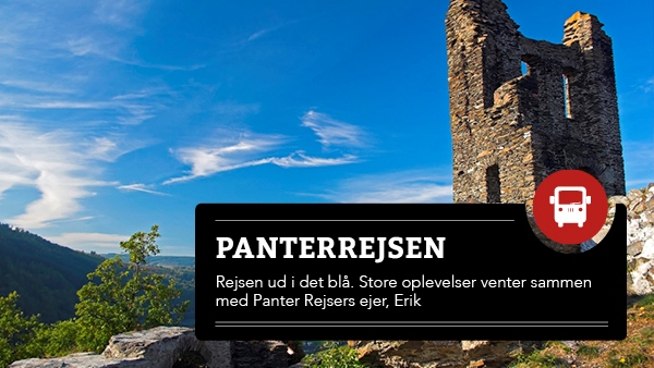PanterRejsen er igen et fantastisk tilbud ud i nostalgiens skønne farvande. På utallige opfordringer er det igen muligt at købe en spændende rejseoplevelse på 10 dage. Bestil rejsen, find dit pas frem, pak din kuffert, og læn dig så tilbage for at opleve en rejse fuld af spænding, uforglemmelige overraskelser, eminent selskab, god mad og dejlig vin.