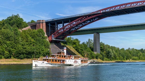 Kielerkanalen blev bygget i årene 1887 1895, 100 km lang. Her sejler ca. 50.000 skibe igennem om året. Vi sejler på denne tur med Freya, en over 100 år gammel hjuldamper med en helt speciel nostalgisk stemning om bord. Skibet er blevet gennemrestaureret for ganske få år siden, men stadig i den gamle stil. Dampmaskinen kan opleves gennem glasvæggen i salonen.