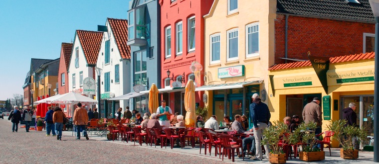 Efter morgenmaden forlader vi Stade og følger Elben mod Altstadt, hvor vi sejler over Elben fra Wischhafen til Glückstadt, og kører derefter mod Husum. Havnebyen Husum ved Nordsøen har i løbet af de sidste århundrede udviklet sig til en lille ”shopping- og kulturmetropol”, hvis særlige charme er kendt langt udover bygrænsen. Byen har et renæssanceslot opført i slutningen af det 16. århundrede der, med sin smukke slotspark, er Husums vartegn. På torvet står en skulptur af figuren Tine, der er en søster til fiskerpigen Amanda i Kerteminde. Efter ophold i Husum kører vi mod Danmark.